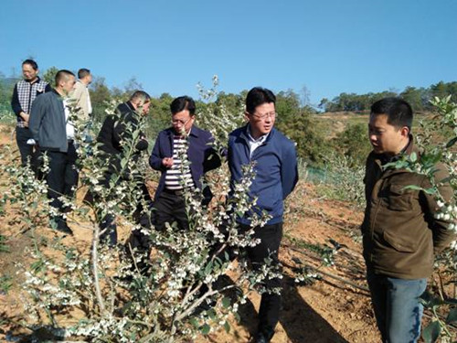 杨志敏一行在华坪县委办、县生物创新办、县农业局领导陪同下到丽江腾辉蓝莓庄园有限公司田坪蓝莓基地、华坪县长丰工贸有限公司船房村羊肚菌种植基地,华荣村华果天保公司桑果加工厂、华坪县萨萨农业综合开发公司嘎佐村羊肚菌产业扶贫示范基地、永兴乡三股水茶叶基地及回龙春茶叶公司,分别考察有机蓝莓种植、羊肚菌种植、桑蚕产业、羊肚菌产业扶贫、茶叶产业发展。与县直部门、乡党委政府、村领导、公司负责人、农民进行交流, 了解产业发展中存在的问题, 认真听取产业发展和全县羊肚菌产业发展及产业扶贫情况。