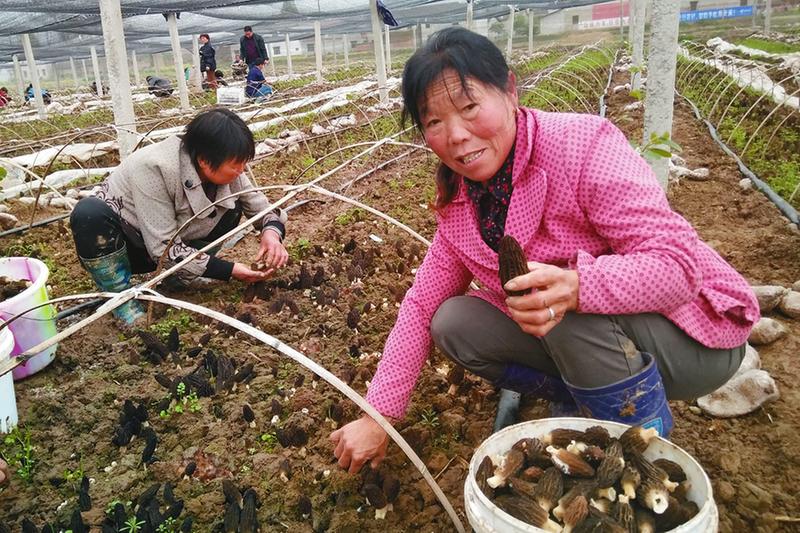 今年,该县已在5个镇流转土地种植羊肚菌达2000亩,带动350余户贫困户通过土地流转、入股分红、入园务工等方式户均增收逾7000元。