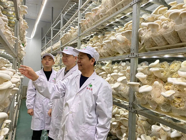 李彦增观察白灵菇工厂化生产情况