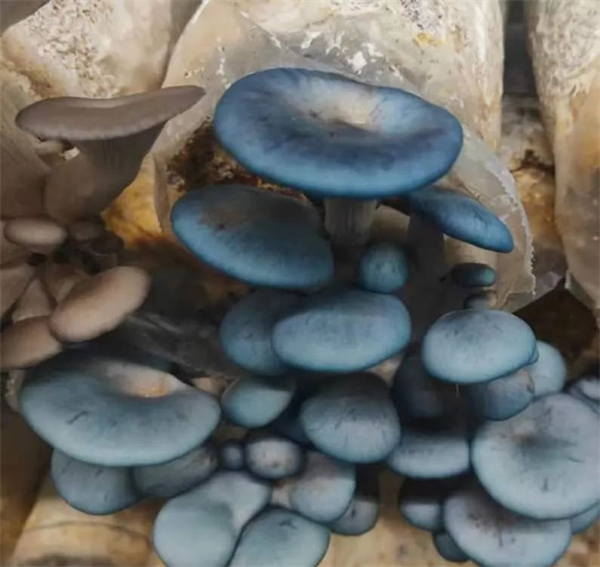 在项目实施中公司研发的蓝平菇“阿凡达”新品种